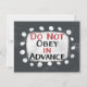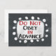 Bold text reading "Do Not Obey In Advance" is centered against a gray background. The black and red text sits on a white rectangle with large textured white dots around it, providing a playful contrast against the solid color backdrop. This is Lesson #1 from "On Tyranny" by Timothy Snyder.
