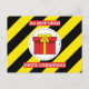 An illustration of a simple red gift box with the text "Do not open until Christmas", and black and yellow striped background. Gifts are the best way of giving surprise to your family and friends. This design is good to be printed on a sticker or gift wrapper for the presents put under the Christmas tree.