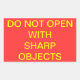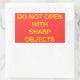 This shipping label is brightly colored for easy visibility. "Do Not open With Sharp Objects" is in bold letters. This design can be purchased as-is or you can use it as a template to make your own unique design. Just upload your own photographs or graphics to this template and add text to finish your design if desired and purchase.