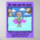 This Do not PEE in pool! poster is the absolute PERFECT addition you your pool area or back door near the pool. The message may stretch the truth (a wee little bit) but sometimes you've got to do what you've got to do! A little shame can be a great deterrent in the hands of the right sinister mind. Features kids playing in the pool and one, apparently, did not heed the warning. The picture says it all.