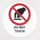 Our do not touch prohibition signs are designed to enhance safety and notify of dangers in various settings. Our ISO 7010 prohibition signs always include a red circle and a red diagonal on a white background with a black standardized pictogram. They are the "must not do" signs. Well-known signs include the "no-smoking" sign, "no photography," "not drinking water," and the "no open flame" sign. These prohibition signs are an essential tool for identifying and cautioning individuals, reducing risks, and promoting preventative measures. With its ISO 7010 compliance, this do not touch prohibition sign meets international standards for hazard communication. It features a bold and eye-catching design, making it easily noticeable in any environment where hazards are present. The prohibition label serves as a visual reminder of the danger. Its clear and concise message helps raise awareness among employees, customers, or visitors, ensuring they exercise caution and take necessary precautions. By prominently displaying this warning on containers, equipment, or areas containing these materials, you can effectively communicate the potential risks and encourage responsible handling and storage practices. This proactive approach significantly minimizes the likelihood of accidents, protecting lives, property, and the environment. Trust our waterproof adhesive labels and signs to enhance safety protocols and maintain compliance with industry regulations. You can customize the text on our labels to indicate the precise nature of the hazard or to translate it into other languages.