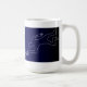 DANGER! Touching Things on This Desk May Result in Serious Injury! Funny office mug with a warning sign on one side and on the other an image of a body outline in chalk touching the outline of a stapler in chalk. The background gradients from dark blue to black to appear like a sidewalk with a crime scene...