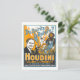 This postcard is a reproduction of a vintage lithograph advertisement for famous magician Houdini. The poster states, "Do spirits return? Houdini says no--and proves it" and promises "magic, illusions, escapes = fraud mediums exposed."