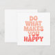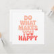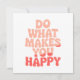 Brighten someone’s day with this cheerful and uplifting greeting card featuring the inspiring phrase “Do What Makes You Happy” in vibrant, colorful lettering. Whether you're gifting it to a friend or using it as a daily reminder to lead with kindness, this design delivers a message of encouragement, joy, and good vibes.