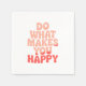 Brighten someone’s day with this cheerful and uplifting table napkin featuring the inspiring phrase “Do What Makes You Happy” in vibrant, colorful lettering. Whether you're gifting it to a friend or using it as a daily reminder to lead with kindness, this design delivers a message of encouragement, joy, and good vibes.