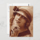 Vintage sepia toned photo of a young woman with hat and flower