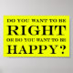 Do You Want To Be Right Or Do You Want To Be Happy? design on yellow background.