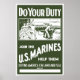 This vintage World War II poster features Marines loading a canon, aboard a battleship. It declares, "Do Your Duty, Join The Marines, Help Them Defend America On Land And Sea". Celebrate Marine Corps and WW2 History with this digitally restored vintage war poster product from The War Is Hell Store.