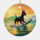 Doberman Beach Surfing Painting Ceramic Ornament