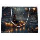 Set sail into the magic of the holiday season with this beautifully detailed illustration, showcasing a proud dog sitting in a festively decorated boat, gliding across a serene Christmas lake. The twinkling lights from nearby pine trees reflect off the water, casting a warm, festive glow that enhances the cozy ambiance. Ornaments dangle from the boat's sides, while glowing lanterns light the way, creating a scene that captures the true essence of Christmas warmth and joy. This nostalgic artwork brings a touch of holiday magic to any space, perfect for those who cherish the spirit of the season.