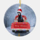 Doberman Dog in Snow sitting in Christmas Truck Ceramic Ornament