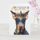 A gorgeous Doberman Pinscher looking kingly in a handsome crown and cool blue sunglasses on this funny birthday card with a king for a day message.