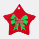 Doberman Dog Silhouette Green Bow Christmas Ceramic Ornament