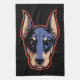 A mascot style, intense eyed, black and rust Doberman Pinscher close-up face drawing. T-shirts, sweats, cards, gifts.