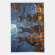 Unleash the spooky spirit with this eerie Halloween design featuring a pack of dogs under a dark, moonlit sky, surrounded by flying bats and glowing pumpkins. Perfect for those who love a touch of frightful fun with their furry friends!