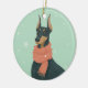 Celebrate the season with this Doberman holiday keepsake, featuring a strong yet graceful illustration inspired by the nostalgic style of 1950s and 1960s holiday artwork. Soft seasonal colors and a classic aesthetic make this ornament a striking and meaningful addition to any Christmas tree.