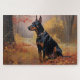 Doberman in Autumn Leaves Fall Inspire Jigsaw Puzzle