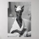 Doberman in Bathrobe, Funny Bathroom Art Poster
