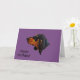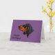 Doberman Pinscher Dog Birthday card on bold purple background. Card reads 'Happy Birthday!' on the front and 'Many Happy Returns' inside.
