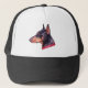 Handsome black and rust Doberman Pinscher face dog trucker hat. Click on Customize to add text. This image is available on many products in my store. Please visit Smilin' Eyes Treasures for more flower, animal, and nature cards and gifts.