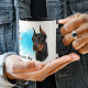 A beautiful portrait of a black and tan Doberman Pinscher Dog is the feature on two sides of this mug. Each image is placed on a bright blue spatter background. Between the two images is the text that describes this loyal and courageous companion, with "the DOBERMAN PINSCHER dog" in black at the bottom. All the text is easily customized to anything you'd prefer; describe your own loyal friend!