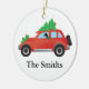Doberman Pinscher driving car w/ Christmas tree Ceramic Ornament