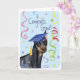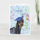 Congratulate your favorite graduate with a gift featuring a cute Doberman Pinscher graduate wearing a mortarboard amid a flurry of confetti.