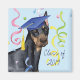 Congratulate your favorite graduate with a gift featuring a cute little Doberman Pinscher graduate wearing a mortarboard amid a flurry of confetti.