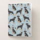 Cute Doberman Pinscher with cropped and uncropped ears sit and stand with paw prints and dog bones pattern.
