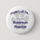 Every good dog owner knows they are the property of their dog. Doberman Pinscher owners will wear: Property of my (spoiled rotten) Doberman Pinscher with pride on a t-shirt, button, mug, magnet, keychain and more.