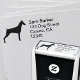 Doberman Pinscher silhouette self inking return address stamp. A fun Dobe lover’s rubber stamp for quickly stamping your return address to personal and business mailings. Visit Jenn’s Doodle World for more dog breed stamps and Doberman themed products.