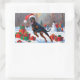 Doberman Running in Snow with Christmas Hat Rectangular Sticker