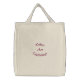 I ordered two of these tote bags for Christmas gifts for my two daughters. I was nice that I could customize them to the cities (othr than Malibu) that I wanted. They arrived in a reasonable time and in tact. I was pleased to see they are exactly like the picture. I would definitely recommend. The embroidery looked good. I did think the picture looked like red print but what I received was orange.