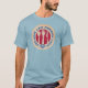 My 11 yo wore adult XL (5’7” 165#). The 8yo is small framed. She wore adult small and tied it in the back. Grandma wore adult large with long sleeve shirt underneath. Tall girl adult medium. Dark haired male adult large. Good quality dark Heather gray, Gildan brand shirt. -it was next up from basic choice and cost about $20 per shirt. Not too thick or thin. Washed and dried well, no major shrinkage. Not see-through. Can wear a bra under it fine. Screen print is just as shown and well done, front and back.