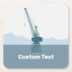 Silhouette of dockyard cargo crane. Vector icon with customizable color. Custom text.