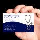 Doctor office business cards with graphic image of a stethoscope, appointment card on back, and great text layout you can customize online. Modern design stands out and gives your business card some character and style, with ability to change the white background color. Designed as a business card template for a doctor, group practice, health insurance, or clinic.