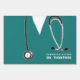 Creative medical school graduation congrats sign featuring hospital scrubs, stethoscope, and a Swiss Army knife. To personalize for doctor edit text to add his or her name.