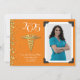 Celebrate the new doctor of medicine graduate from medical school with this gold and Orange medical caduceus graduation announcement! Elegant with a vintage photo border and gold confetti accents! Perfect for anyone graduating as an md or do with doctorate!