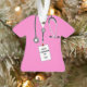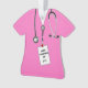 Creative medical school graduation novelty gift for doctor featuring pink hospital scrubs and ID tag. To personalize edit text to add name and year of graduation.