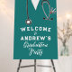 Creative medical school graduation party welcome sign for doctor graduate featuring hospital scrubs, stethoscope and funny Swiss army knife. To customize edit text.