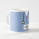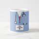 Creative doctor graduation gift mug featuring scrubs, stethoscope and ID badge. To personalize, edit text to add name of physician to create a collectible keepsake.