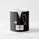 Creative doctor graduation gift mug featuring black hospital scrubs, stethoscope and ID badge. To personalize, edit text to add name of physician to create a collectible keepsake.