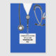Creative medical school graduation card template for doctor graduate featuring hospital scrubs and funny Swiss Army knife. To personalize edit text to add physician's name.