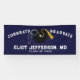 Medical school graduation party congrats banner for doctor featuring doctoral grad cap, gold tassel and stethoscope. To personalize, edit text to add name of med school grad and year.