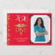 Celebrate the new graduate from doctor of nursing practice school with this gold DNP caduceus graduation announcement in red! Elegant with a vintage photo border and gold confetti accents! Perfect for anyone graduating as a DNP with their degree as a nurse practitioner!