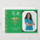Celebrate the new graduate from doctor of nursing practice school with this gold DNP caduceus graduation announcement in green! Elegant with a vintage photo border and gold confetti accents! Perfect for anyone graduating as a DNP with their degree as a nurse practitioner!