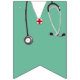 Unique doctor party decoration featuring creative hospital scrubs and stripes.