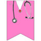 Unique medical school celebration decoration or doctor party bunting featuring pink hospital scrubs, stethoscope and stripes.