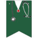 Unique doctor party decoration featuring creative green hospital scrubs and stripes.