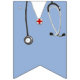 Unique doctor party decoration featuring blue hospital scrubs and stripes.